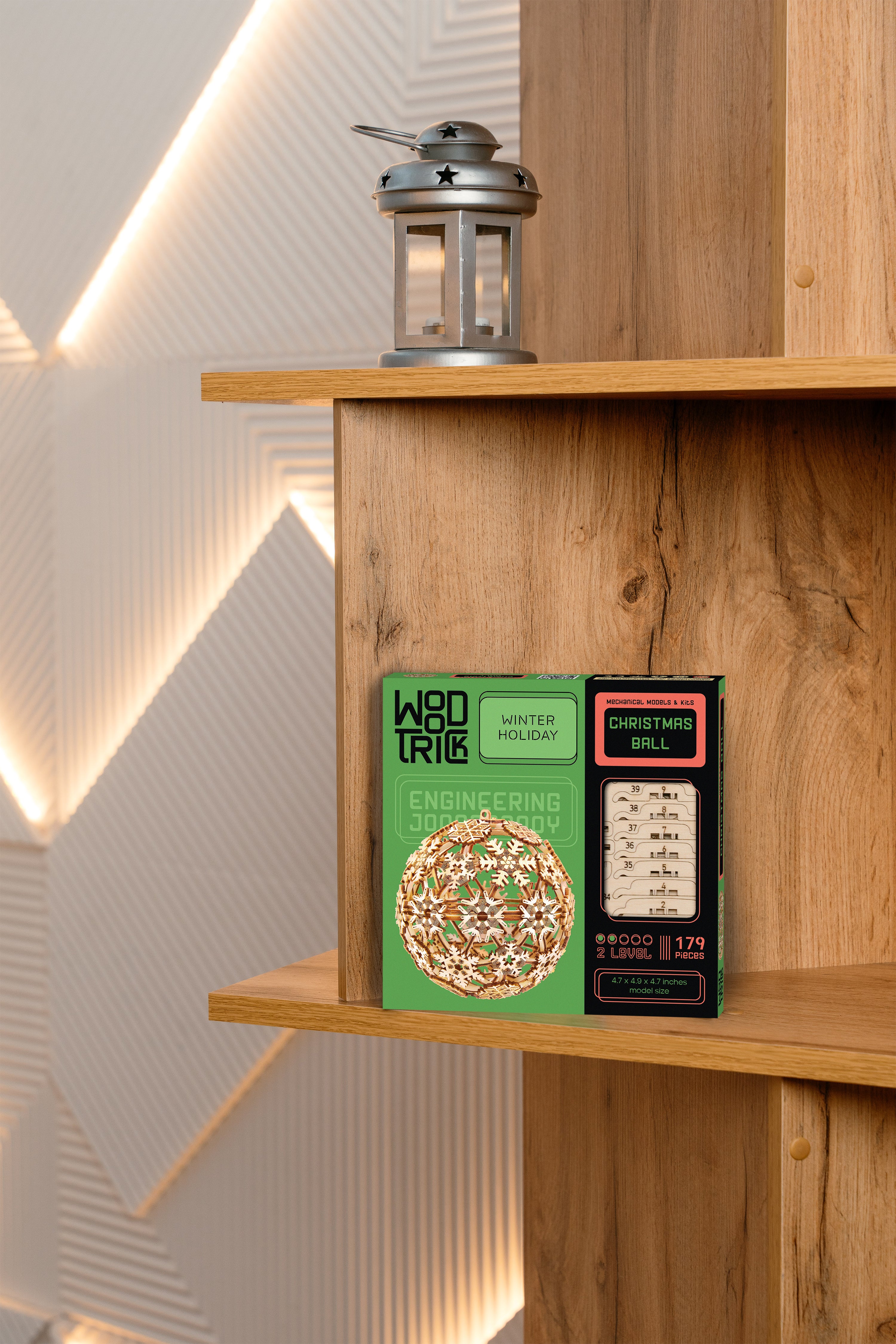 Even if you've never assembled a building kit, the set comes with thorough illustrated instructions that will make things easier for you to grasp. You'll experience many happy feelings as you put together the Christmas Ball, and you may present a gift to a special someone by hanging the ornament from the tree and placing your gift inside. All lovers of unique puzzles, Christmas, and merely strange gifts will like the festive wooden model known as the WoodTrick Christmas Ball!