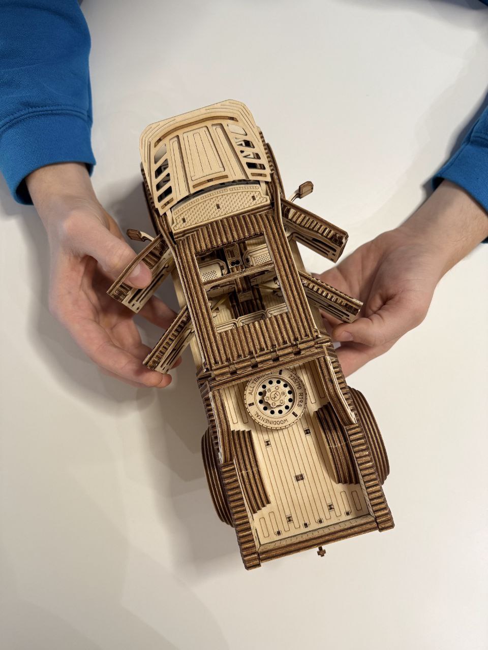 La camionnette pleine grandeur est un modèle 3D en bois personnalisé de WoodTrick. Il vous faudra 10 à 12 heures pour l'assembler, et le nombre total de pièces pour le modèle est de 706 pièces. Mais ne vous inquiétez pas ! Le kit contient un guide illustré pour vous aider à assembler le pick-up.